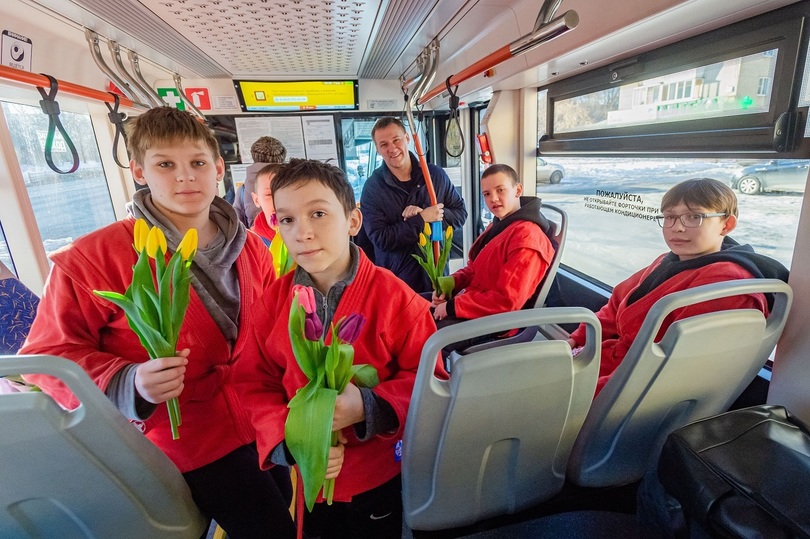 Воспитанники спортивной школы «Единоборств» поздравили с 8 Марта пассажирок трамвая «Львенок» маршрута Екатеринбург – Верхняя Пышма. Об этом сообщили в пресс-службе Общественного совета проекта «Zа самбо» в Свердловской области.