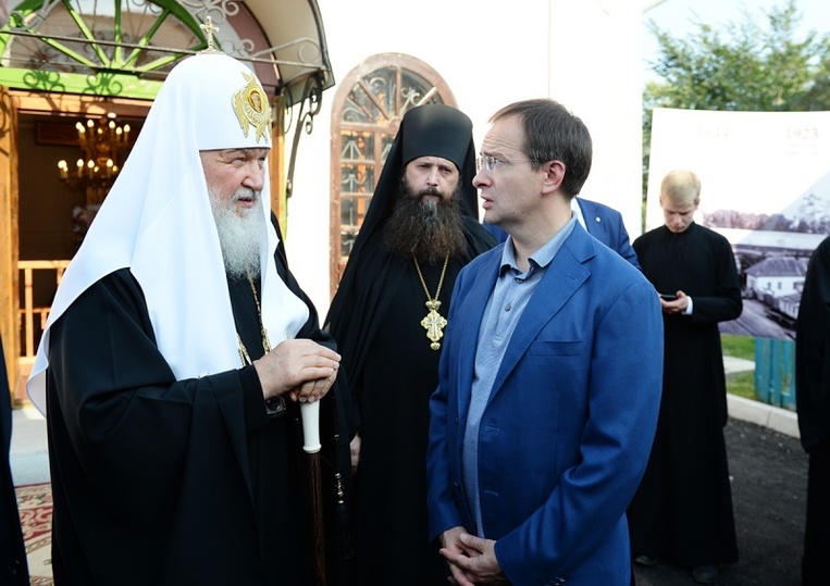 После патриарх Кирилл посетил новый Богоявленский храм, который был построен при поддержке министра культура Владимира Мединского и депутата Госдумы РФ Александра Ильтякова.