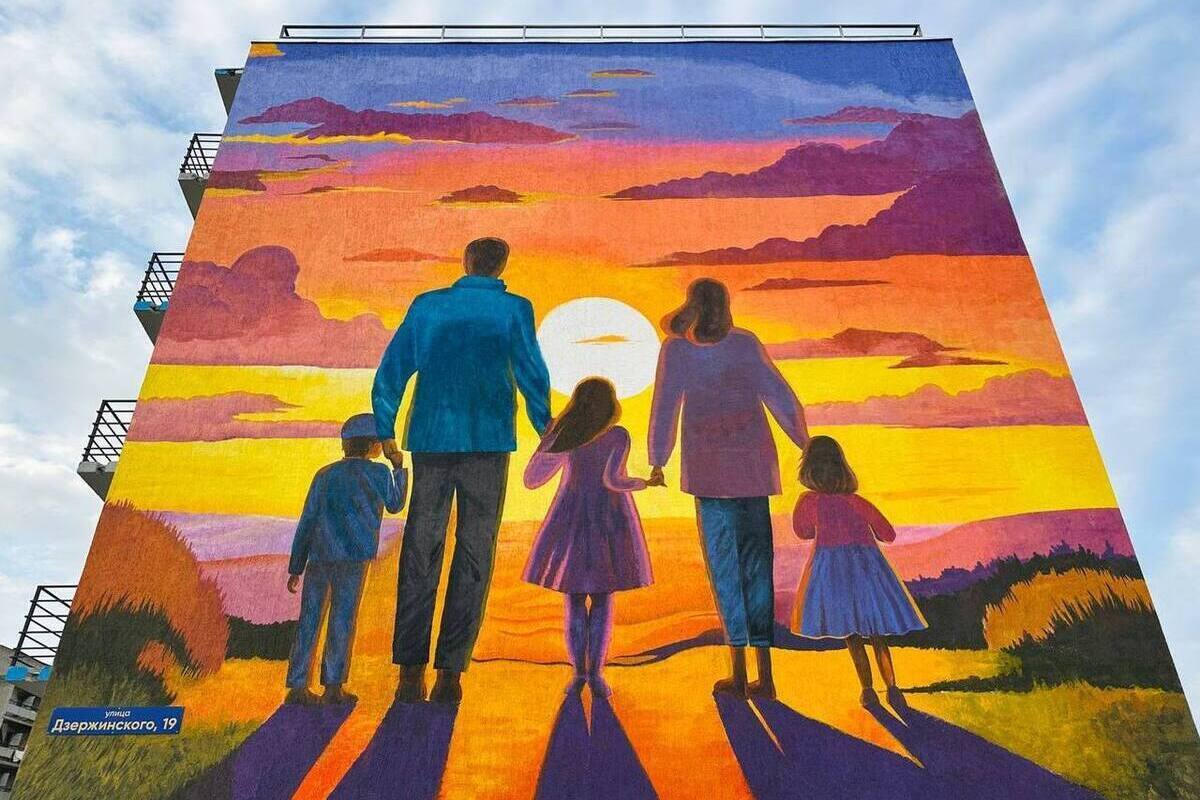 В Кургане в рамках фестиваля паблик-арта на стене пятиэтажного дома, расположенного на улице Дзержинского, появился мурал о семейных ценностях. Его автором является студентка Курганского технологического колледжа Софья Быструшкина.
