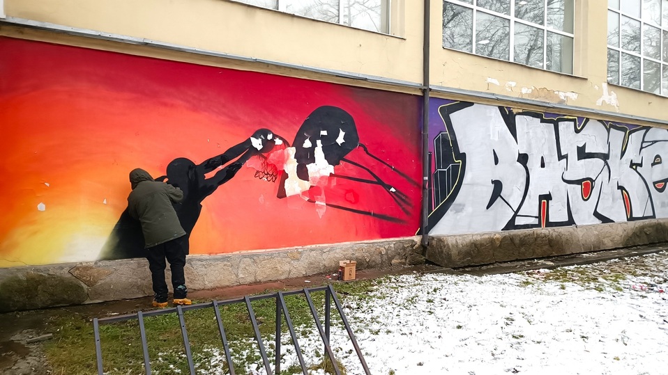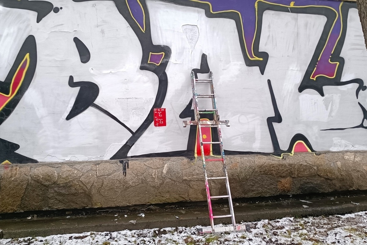 Читатель МК-Урал рассказывает, что днем 29 ноября на стене работал мужчина с баллончиками с краской, проводя реставрацию на всех пострадавших фрагментах спортивного мурала.