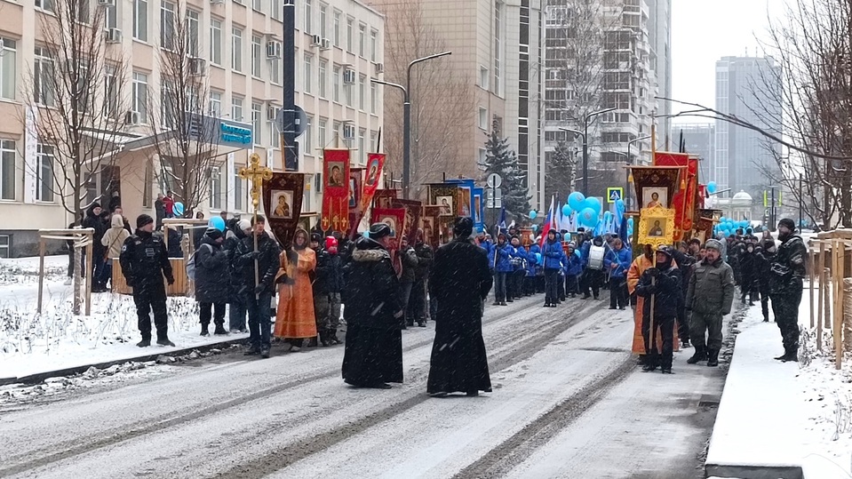 В отличие от шествия 4 ноября, крестный ход в честь святой Екатерины прошел более спокойно, в процессе мероприятия не звучали лозунги и кричалки.