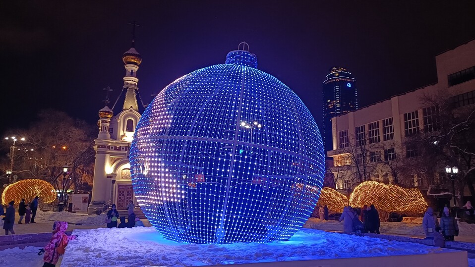 Традиционный пятиметровый мультимедийный «Новогодний шар» вновь установили на памятнике-фонтане "Каменный цветок" в сквере у часовни святой Екатерины. Шар зажегся более 50 000 светодиодами, сообщает телеграм-канал Фонда Святой Екатерины.
