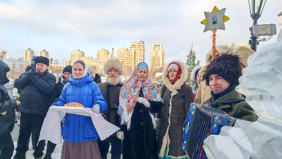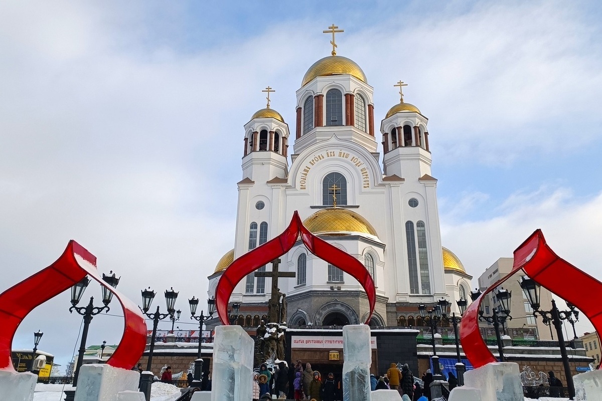На улице Царской традиционно построили ледяные ворота с красными маковками, ведущие на лестницу к храму.