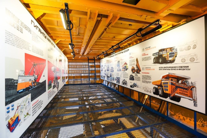 В машине-гиганте можно узнать историю карьерных самосвалов: от 4-тонного ЯС-1 1930-х годов до современных исполинов. А также много другой техники: от шагающих экскаваторов до уральского великана ЭКГ-35.