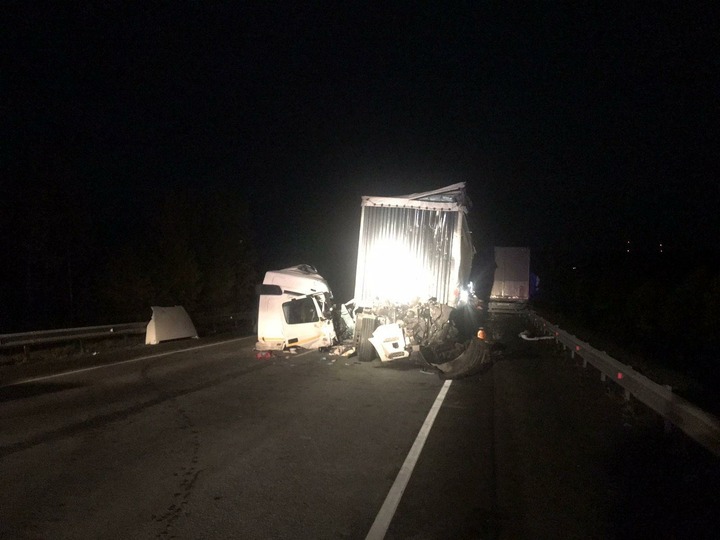 Как сообщают в УГИБДД ГУ МВД России по Свердловской области, в результате лобового столкновения на месте аварии погиб водитель Scania. С многочисленными травмами в больницу доставлен водитель КАМАЗа и пассажир Скании.