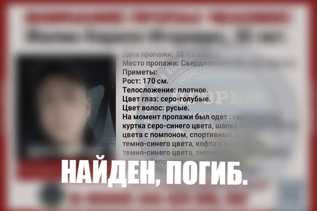 По данным осуществлявшего поиск отряда «Прорыв», Кирилл Игоревич пропал 28 декабря в свердловском поселке Балтым.