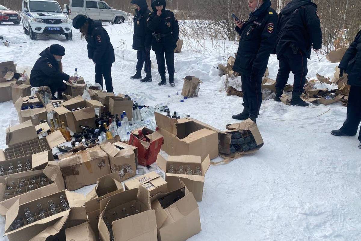 200 бутылок с алкоголем обнаружили в снегу на окраине Екатеринбурга