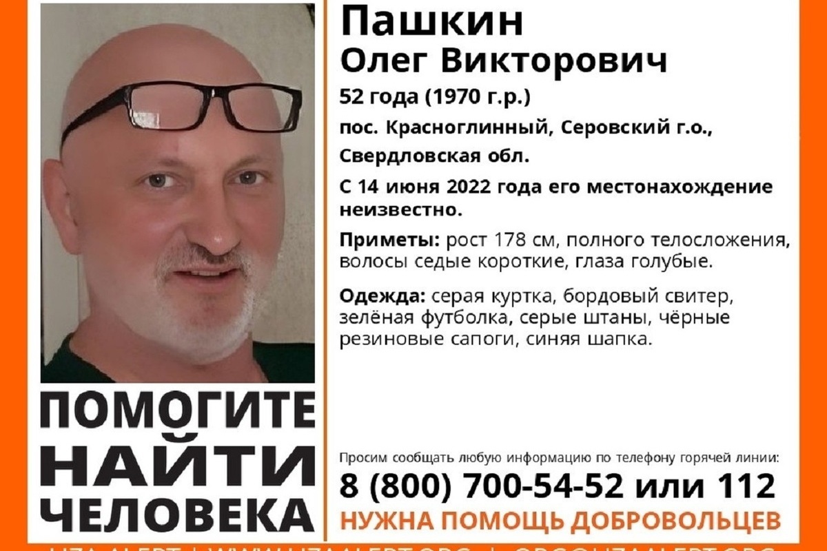 Сообщить о местонахождении Олега Пашкина можно по телефонам: 8(800)700-54-52 или 112.