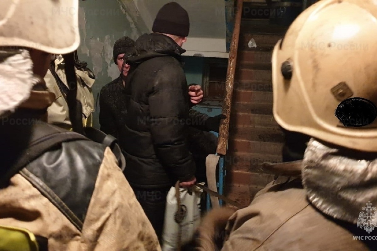 Пожарно-спасательные подразделения с помощью спасательных устройств и дыхательных аппаратов по лестничным маршам спасли двух человек.