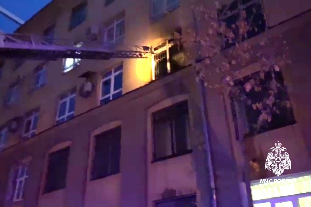 Пожар в офисном помещении на третьем этаже. В этом здании располагается Уральский экономический колледж, а также другие учреждения.