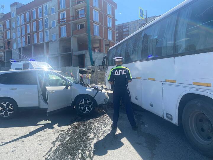 После этого «Субару» допустил выезд на перекресток на запрещающий сигнал светофора, где произошло столкновение с пассажирским автобусом «Киа», которым управлял мужчина 1979 г.р.