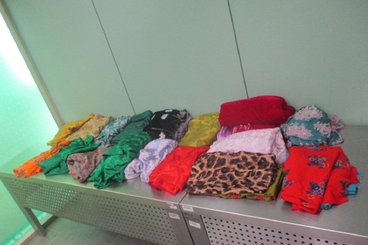 Двое пассажиров с грузом, явно не предназначенным для личного пользования, прибыли в Екатеринбург из Душанбе. В багаже одной женщины было 18 кг отрезов тканей разных цветов и орнаментов, а в багаже мужчины – 20 килограммов тканей и платков.