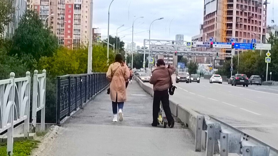 Инцидент произошел на улице Ткачей в 15:37. Женщина на электросамокате, в очках, с черными наушниками на голове, совершила наезд на девушку, которая шла по тротуару по направлению к улице Машинной, перед заходом на мост через реку Исеть, передает корреспондент МК-Урал.