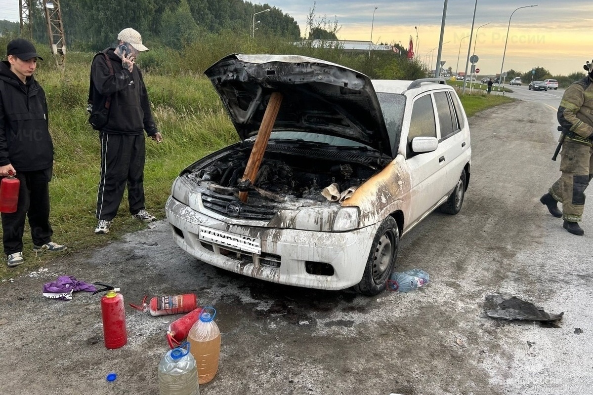 1 сентября, в 18:55, спасатели получили сигнал о возгорании автомобиля Mazda Demio, произошедшем на десятом километре Полевского тракта.