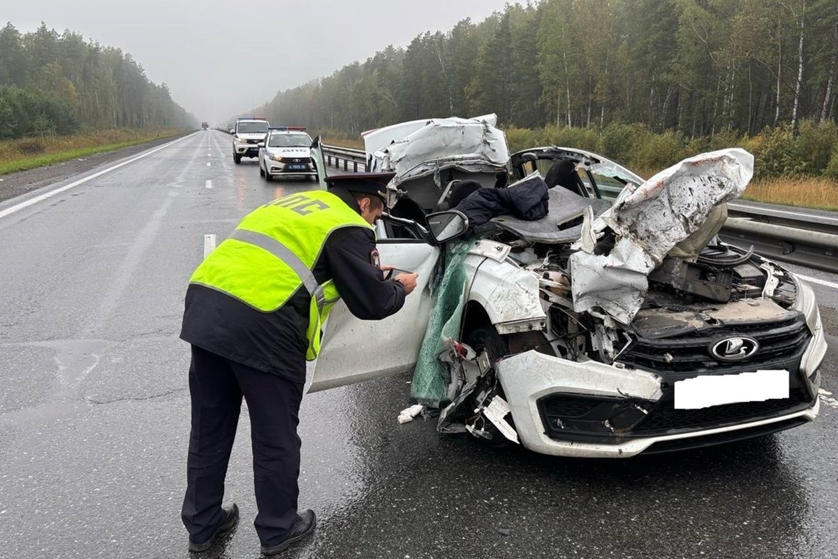 Ранним утром 6 августа на 252-м километре трассы Екатеринбург – Тюмень, в Тугулымском районе, легковушка врезалась в седельный тягач.