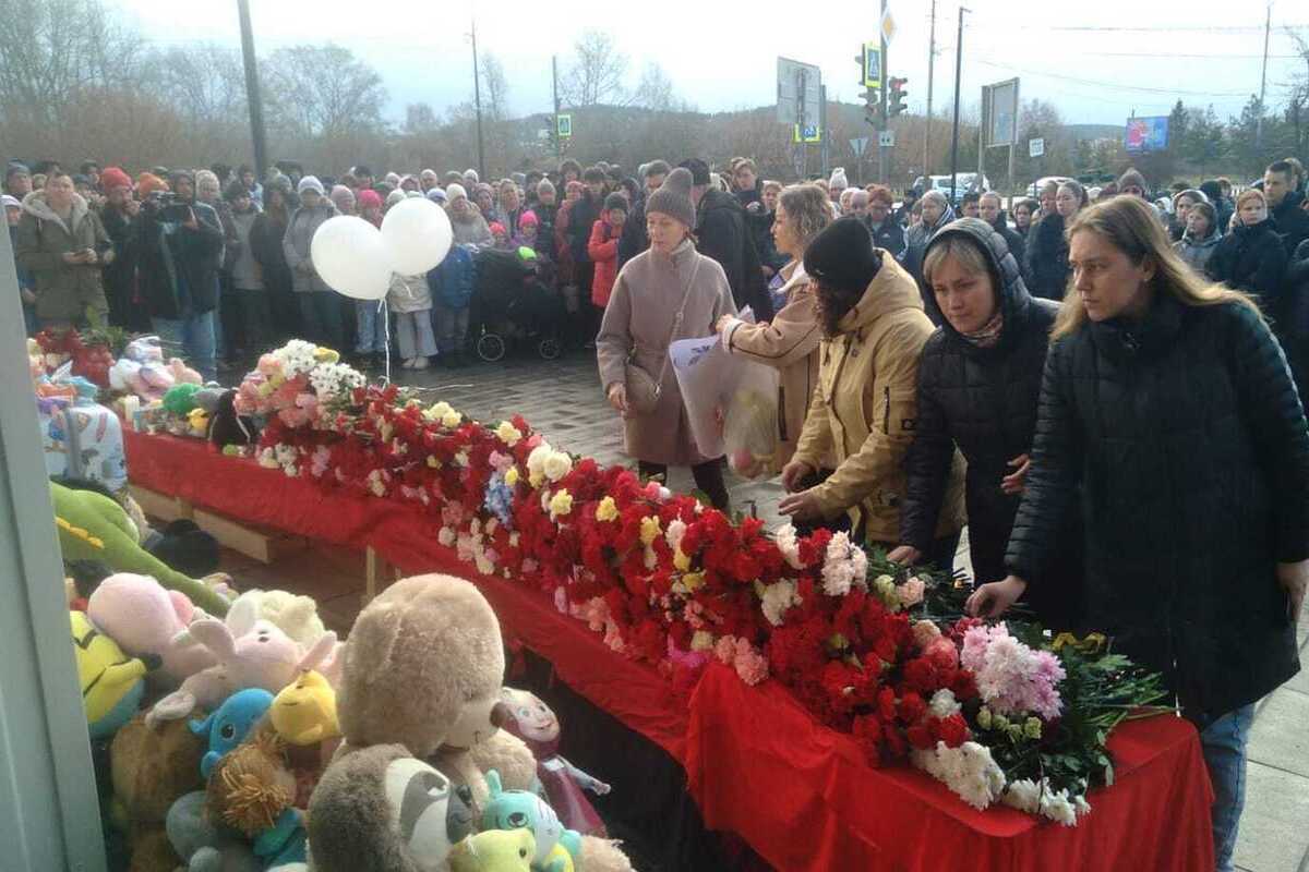 Около мемориала собралось около двух сотен человек, количество участников траурного собрания увеличивается. Поначалу горожане были настроены гневно, позже к собранию подключился представитель православной церкви.
