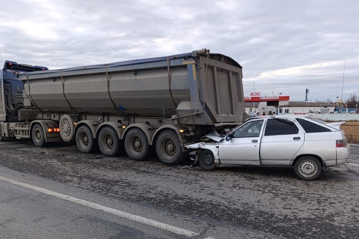 По предварительным данным, водитель автомобиля ВАЗ-2112 на большой скорости влетел в грузовик «Ситрак», который стоял на проезжей части. Передняя часть легковушки попала под прицеп.
