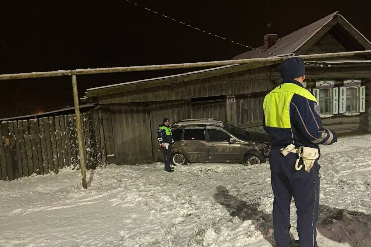 В Нижней Салде автомобиль «Лада Гранта» под управлением молодого водителя наехал на опору дорожных знаков, сбил пешехода на тротуаре и врезался в ворота частного дома.