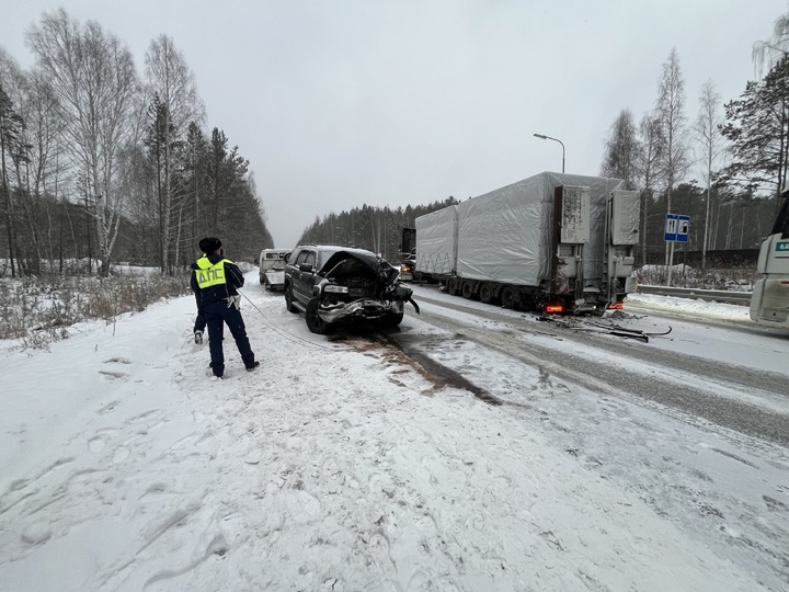 По предварительным данным пресс-службы Управления Госавтоинспекции ГУ МВД России по Свердловской области, 47-летний водитель Chevrolet Tahoe, двигавшийся со стороны Нижнего Тагила в сторону Екатеринбурга, допустил столкновение с впереди стоящим грузовиком «Вольво» с габаритными грузом, которым управлял 46-летний водитель.