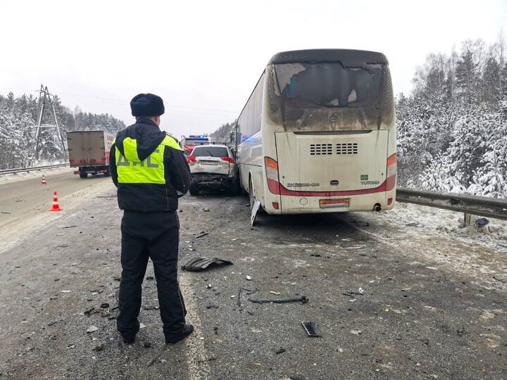 По предварительным данным пресс-службы свердловского управления ГАИ, водитель Mitsubishi Pajero выехал на встречную полосу, где допустил столкновение с легковым автомобилем «Иксид» и попутно движущимся автобусом Yutong маршрута №523 «Буланаш – Екатеринбург».