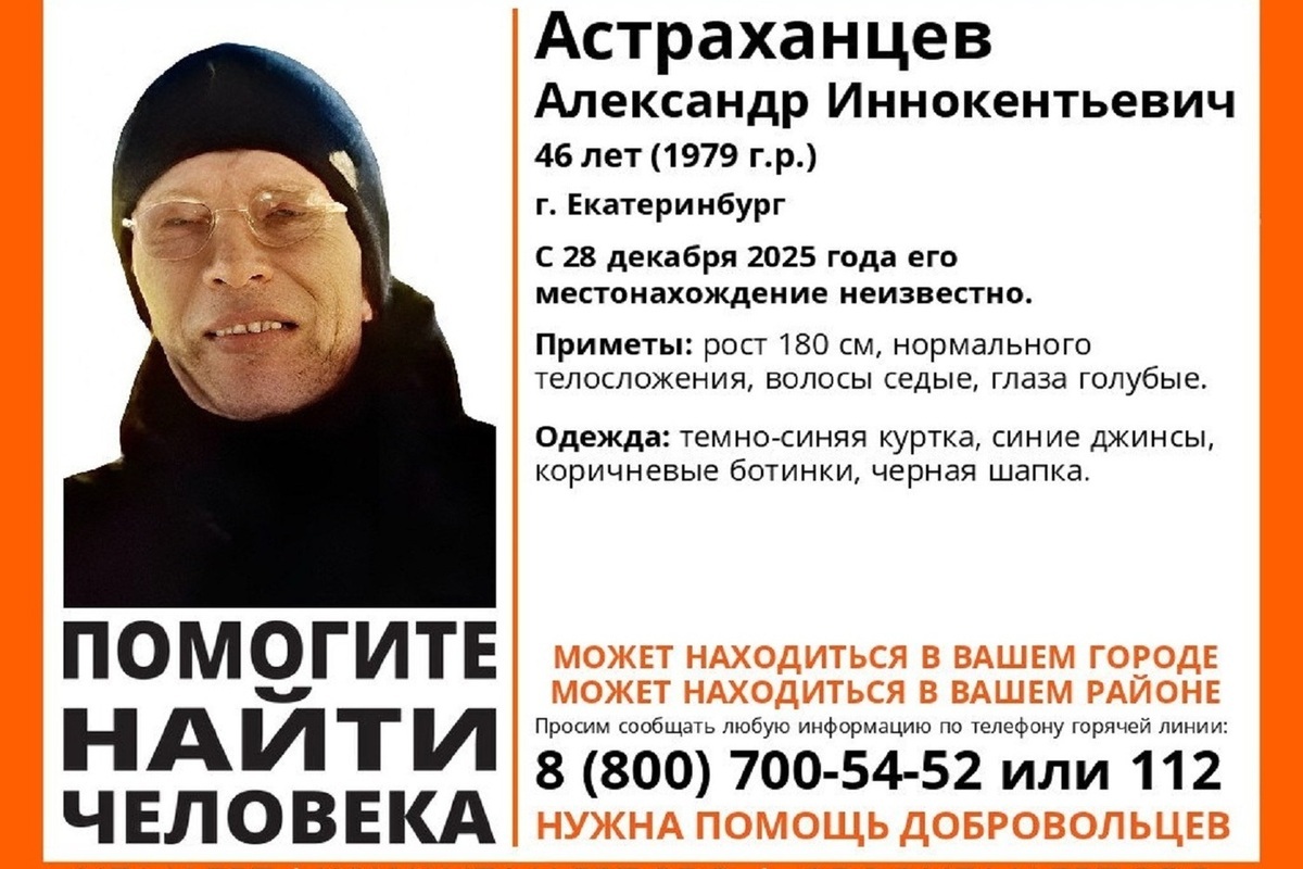 С 28 декабря 2025 года его местонахождение неизвестно, сообщает свердловский поисковый отряд «ЛизаАлерт».