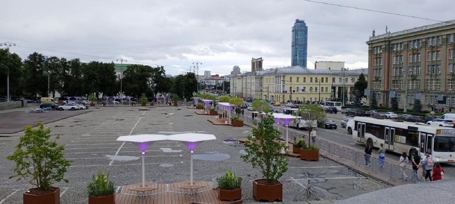 Объекты благоустройства на площади будут действовать до осени. На это время парковка на площади 1905 года отменяется.