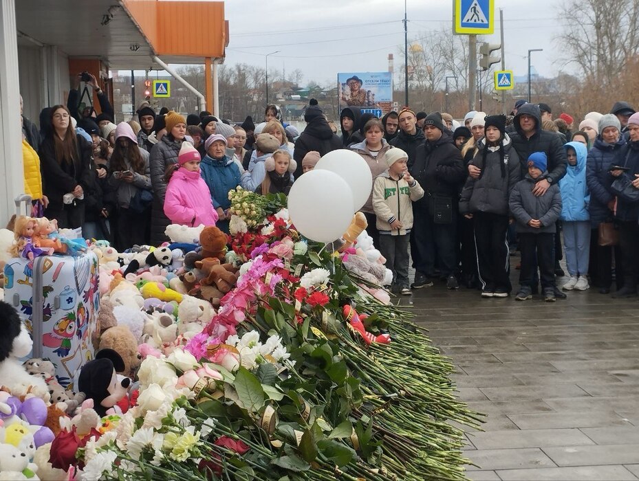 На месте мемориала дежурят сотрудники правоохранительных органов. Они ограничили проезд по улице Чехова, так как собралось очень много людей и всем не хватило места на тротуаре, граждане вынуждены стоять на дороге.