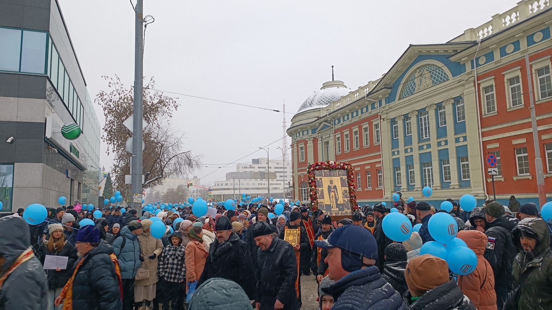 Шествие началось после литургии в кафедральном соборе. На этот раз, как и 4 ноября, православные прошли не по улице Горького, а по открытой летом после реконструкции улицы Гоголя.