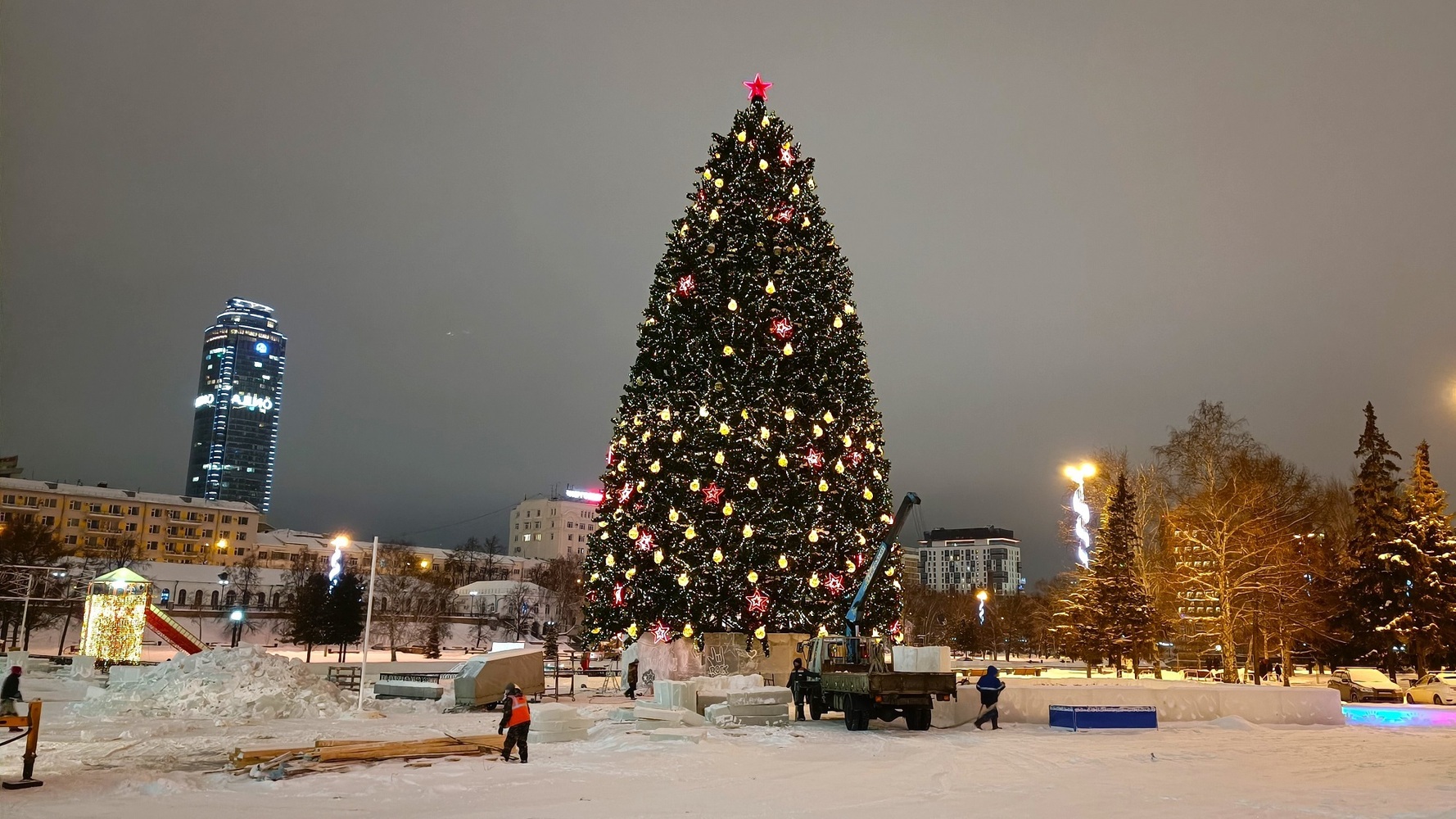 Екатеринбург, в котором первый снежный покров начал устанавливаться только 7 декабря, готовится к встрече Нового года.