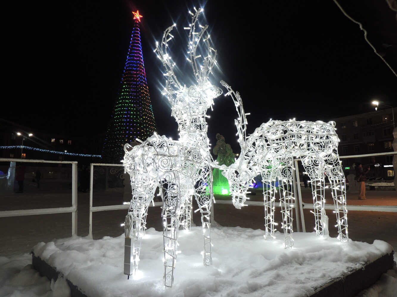 Здесь же, уже по традиции многих лет, открыли почту Деда Мороза, установили светящихся оленей и входную группу.