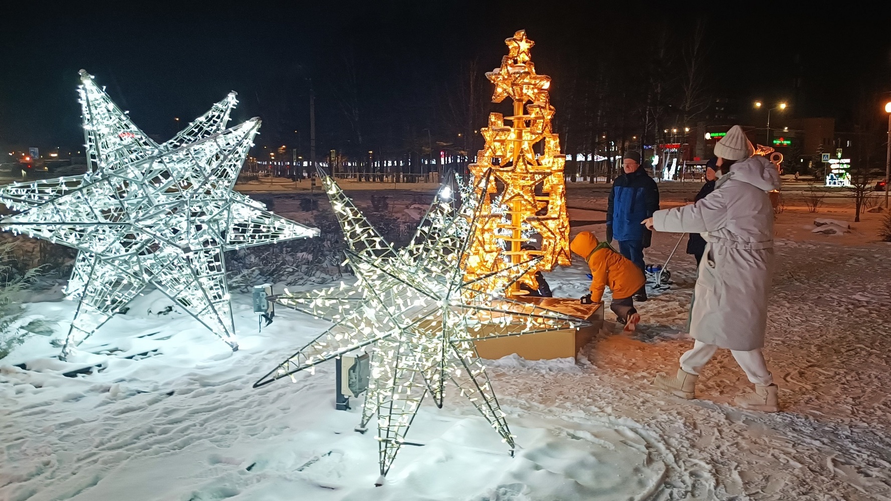 При подготовке Верхней Пышмы к празднованию Нового года на улицах города установили светящиеся арт-объекты, украсили деревья, парки, площади, фасады домов.
