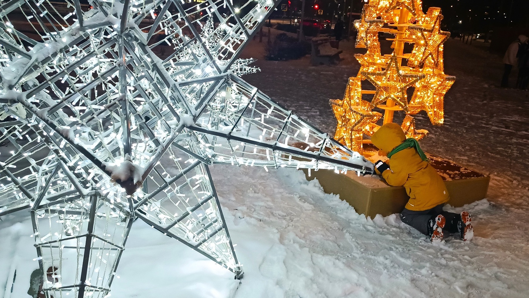 При подготовке Верхней Пышмы к празднованию Нового года на улицах города установили светящиеся арт-объекты, украсили деревья, парки, площади, фасады домов.