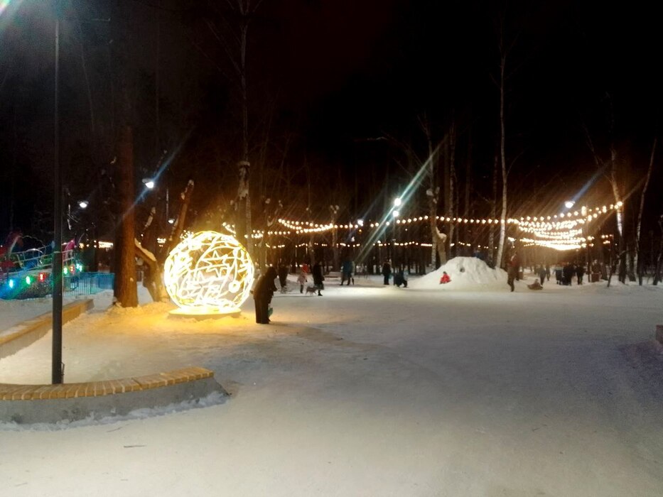 В Летнем парке «Уралмаш» установили новогоднюю елку, горки для детей, украсили гирляндами аттракционы, деревья, пешеходные дорожки и так далее.