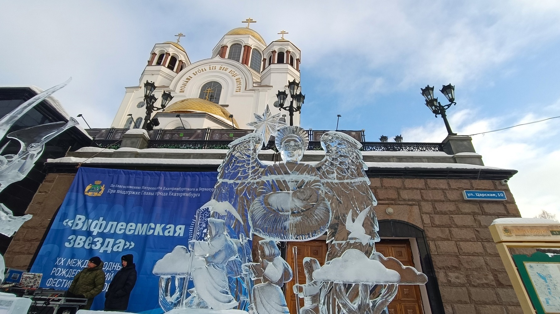 7 января в Екатеринбурге открыли экспозицию XX фестиваля ледовой скульптуры «Вифлеемская звезда». Около Храма на крови представили работы 25 художников из 22 городов России.