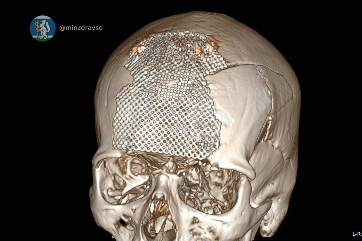 Екатеринбургские специалисты осуществили 3D-моделирование черепа, сформировали виртуальный прототип анатомической формы, после чего изготовили индивидуальную танталово-титановую пластину, в точности соответствующую объёму и контуру разрушенного участка.