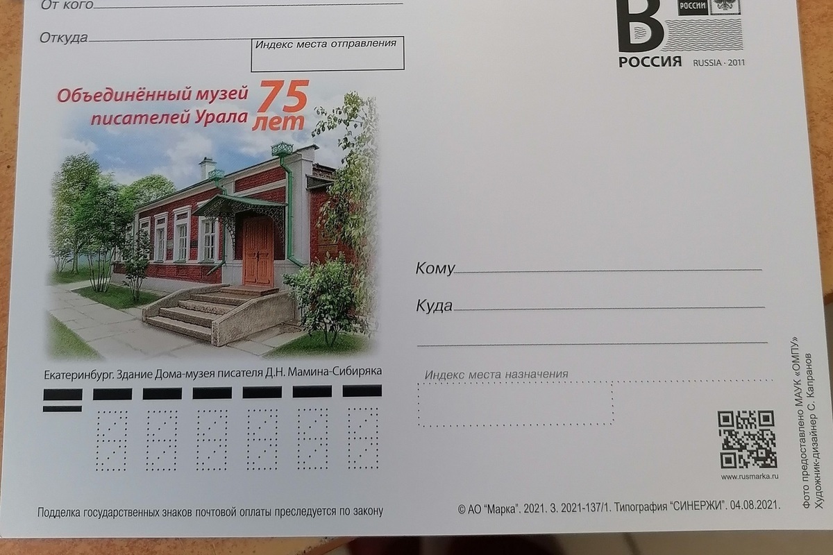 В почтовые отделения Екатеринбурга поступили карточки, выпущенные в честь 75-летия Объединенного музея писателей Урала. Их выпуск был инициирован Почтой России.