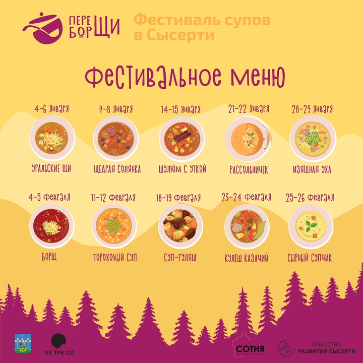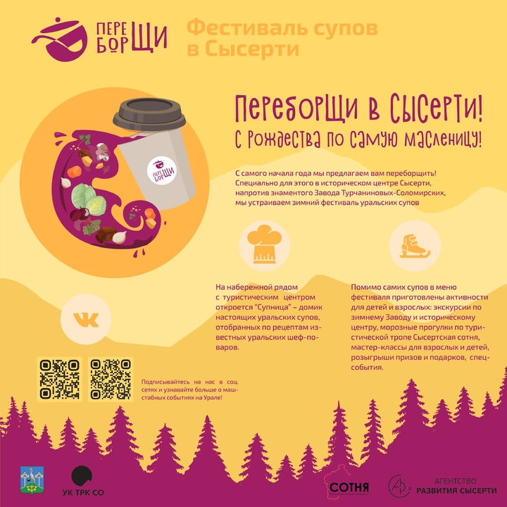 В день празднования Рождества, 7 января, в историческом центре Сысерти креативный кластер «На Заводе» вместе с организаторами тропы «Сысертская сотня» проведут гастрономический фестиваль «Переборщи!» с участием уральских шеф-поваров.