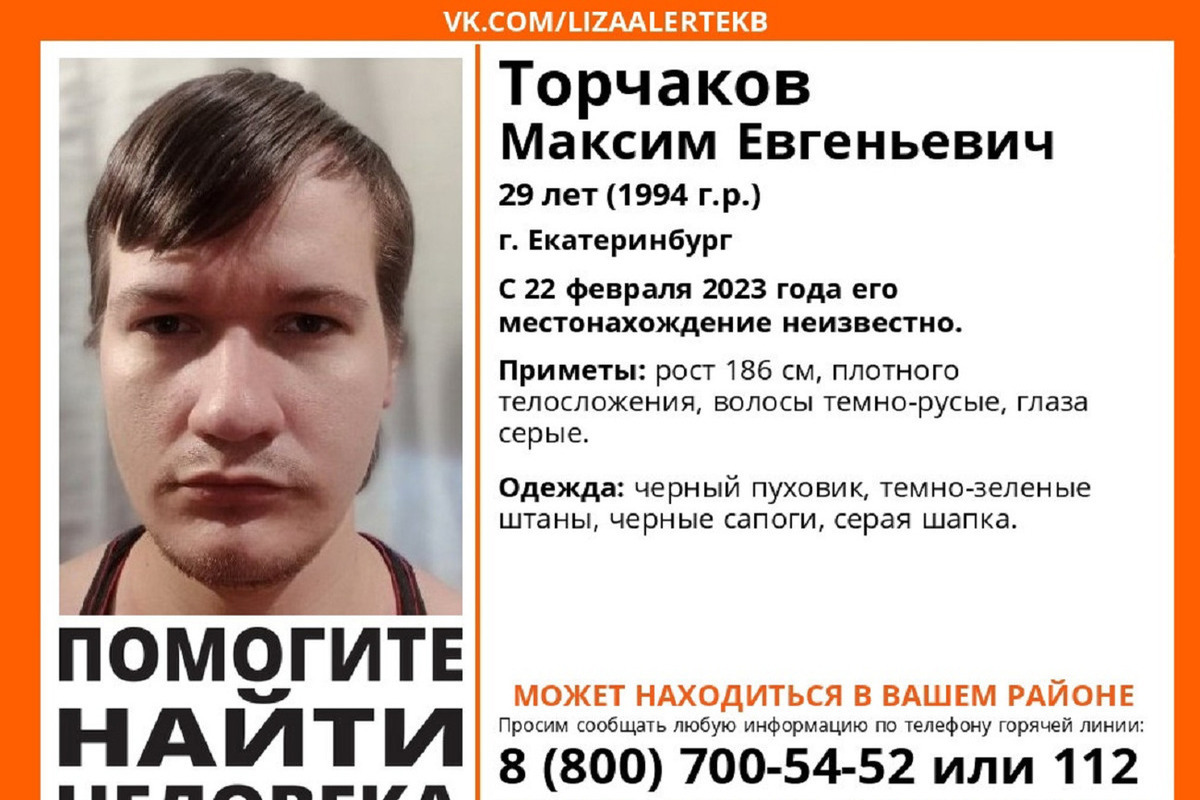 В Екатеринбурге пропал 29-летний мужчина Максим Торчаков. Его ищут сотрудники полиции и волонтеры поискового отряда «ЛизаАлерт».
