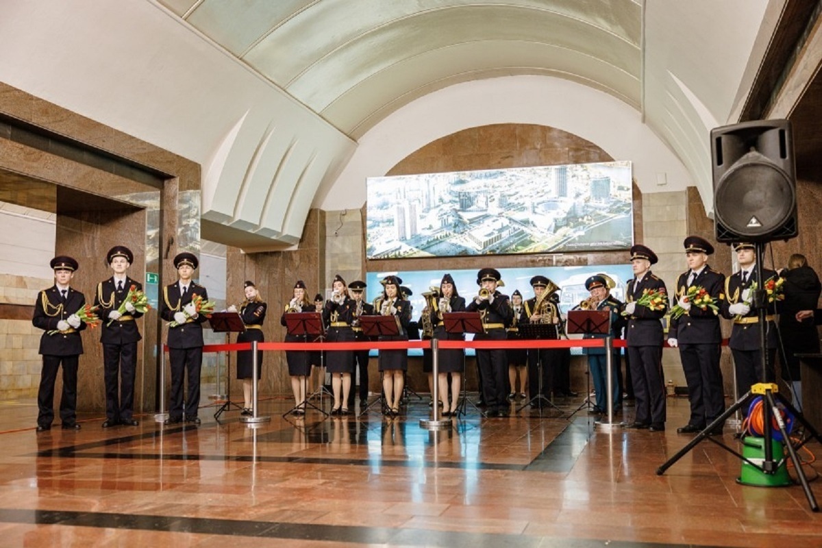 Концерт отыграли 20 студентов вуза. Они исполнили известные хиты, а также песни прошлых лет – «Синий платочек», «Катюша». Курсанты в рамках акции «Для вас, любимые» раздали пассажиркам тюльпаны.
