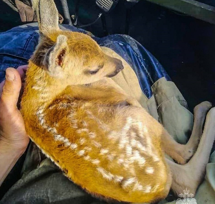 «Косуля вместе с другим своим детенышем перепрыгнула огненный фронт, а малыш оказался слишком мал и слаб для такого прыжка, – сообщили в ведомстве. – Огонь уже опалил косуленку задние лапы и если бы не вовремя подоспевшие сотрудники МЧС, гибели животному было не избежать».