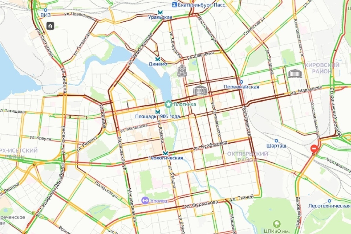 По данным водителей пробки зафиксированы на улицах Малышева, Челюскинцев, Фурманова, Куйбышева, на проспекте Ленина и почти на всех выездах из города.