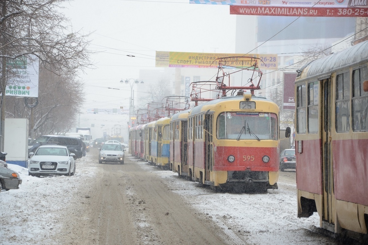 Днем 7 марта в Екатеринбурге, в микрорайоне ВИЗ встали трамваи. Об этом сообщают местные жители в социальных сетях.