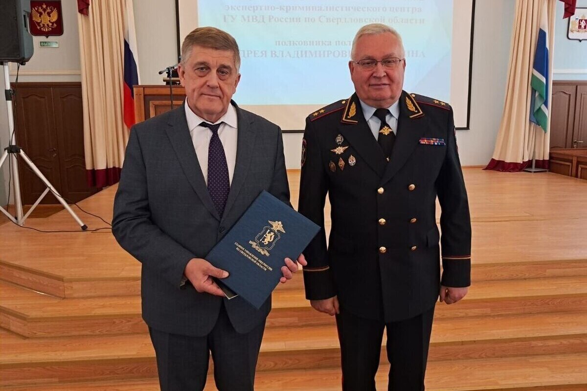 Начальник экспертно-криминалистического центра ГУ МВД России по Свердловской области Андрей Костин ушел на заслуженный отдых по выслуге лет. В связи с этим состоялась торжественная церемония.