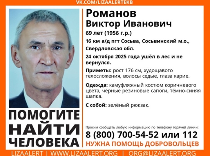 На севере Свердловской области пропал 69-летний Виктор. В пятницу, 24 октября, он ушел в лес в Сосьвинском районе и исчез. Последний раз его видели в районе 16-го километра автодороги пгт Сосьва. Об этом рассказали в поисковом отряде «ЛизаАлерт».