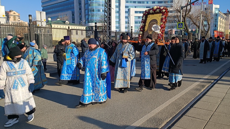 4 ноября, в 11:30, в Екатеринбурге начался крестный ход в честь Казанской иконы Божией Матери. Шествие прошло от Свято-Троицкого кафедрального собора к Храму-Памятнику на Крови.