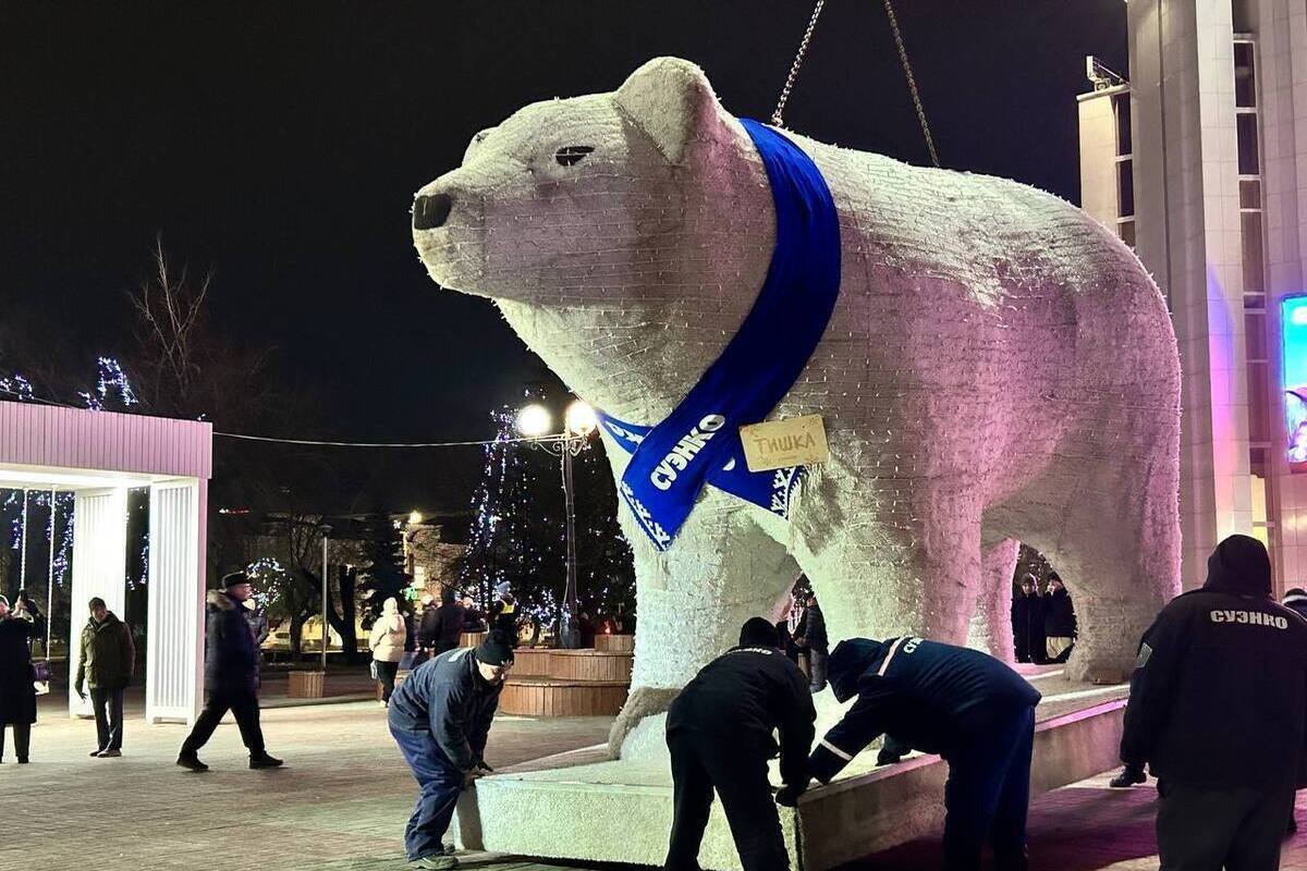 Вечером 2 декабря на Троицкой площади Кургана установили белых мишек компании СУЭНКО. Об этом сообщает пресс-служба администрации города.