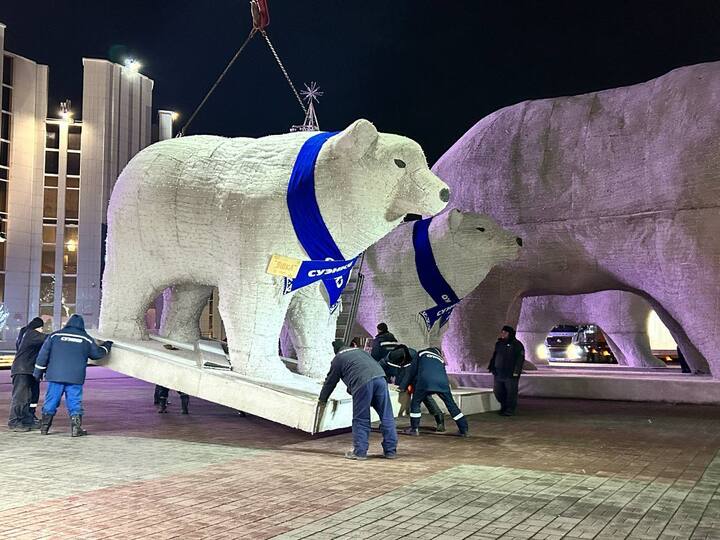Медведей устанавливают перед Новым годом. Они располагаются в центре города несколько месяцев.