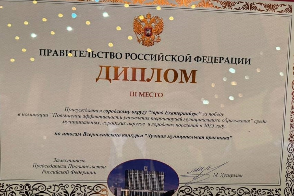 Награду вручил заместитель начальника Управления президента РФ по внутренней политике Евгений Грачев. Из федерального бюджета Екатеринбург получил 30 млн рублей На что потратить деньги, окончательно еще не решили.
