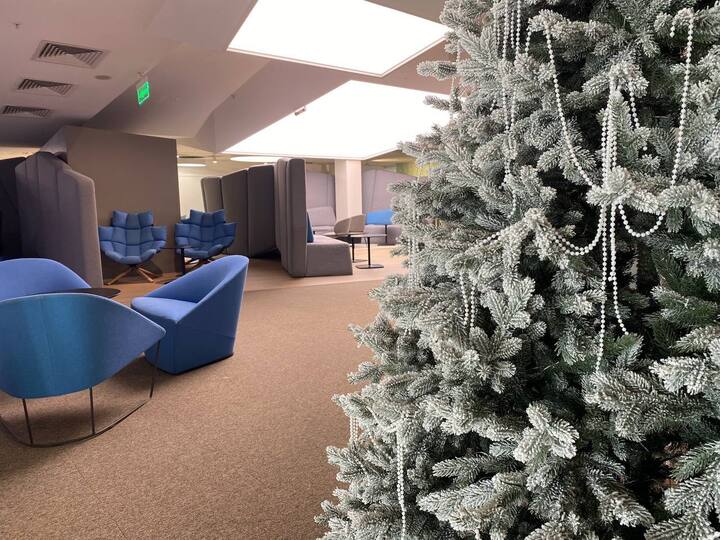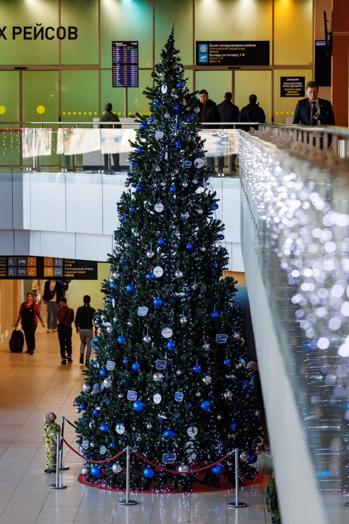 По словам сотрудников «Кольцова», помимо основной восьмиметровой елки, в залах повышенной комфортности установлены небольшие елочки, создающие уют и приносящие атмосферу праздника.