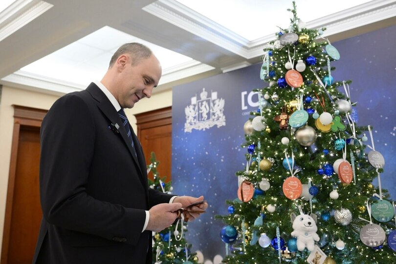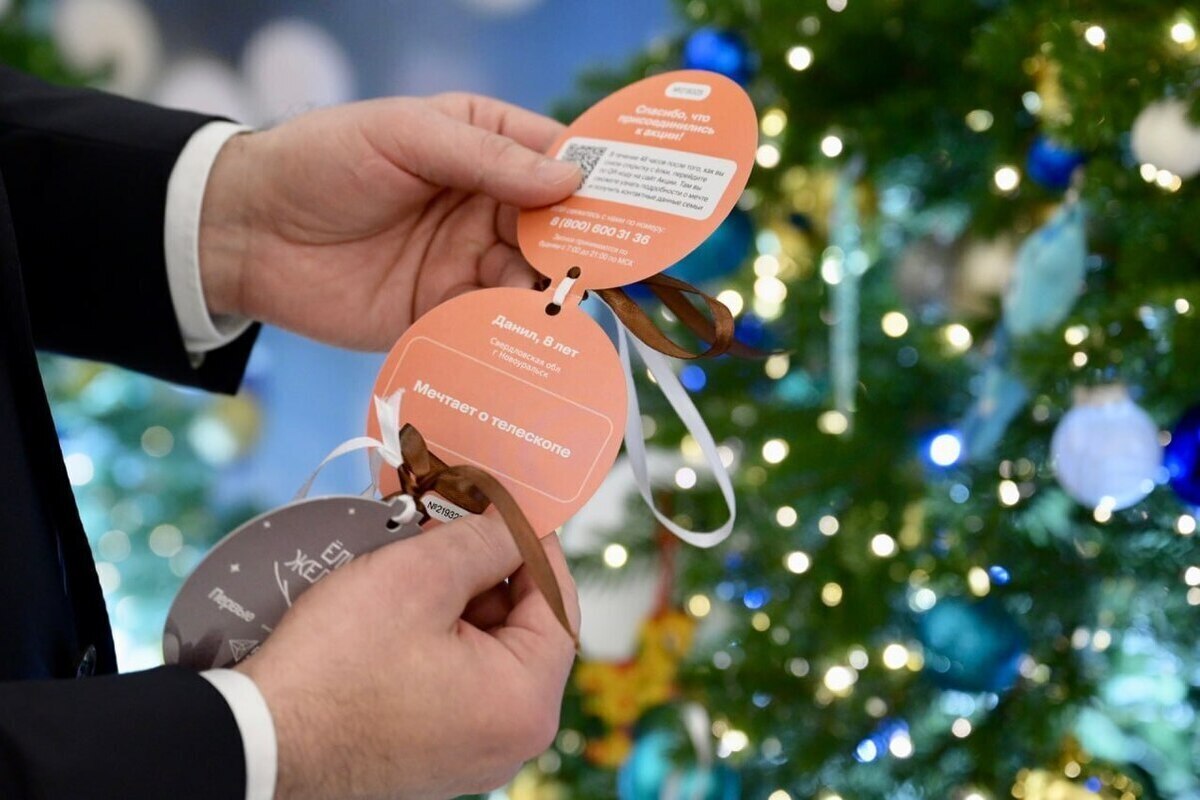 Губернатор Свердловской области Денис Паслер принял участие во Всероссийской акции «Ёлка желаний». 18 декабря он снял с елки два шарика с мечтами детей.
